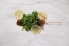 ベトナムで人気の甘辛タレ・ヌクチャムでマリネした希少部位の米国産ラウンドオイスターを香ばしく焼き上げ、たっぷりのフレッシュパクチー&レモンをのせて仕上げた串焼き。